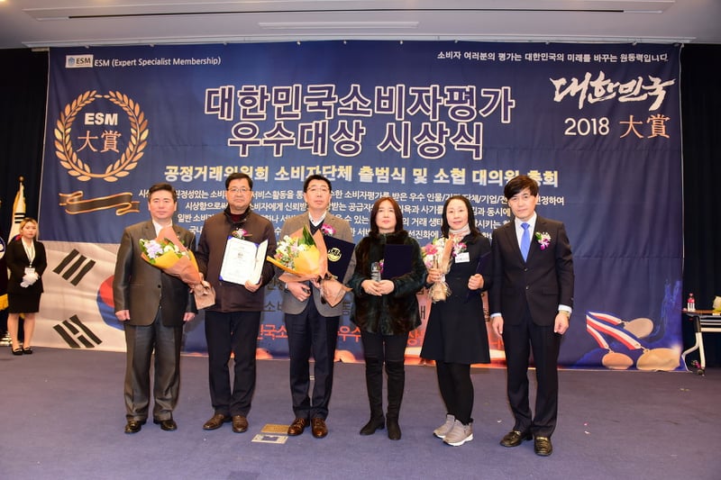 ▲사진=건강/제조부문에서 대상을 받은 후 기념촬영을 하고 있는 성삼에덴그룹 이에스더회장(오른쪽 두번 째) ⓒ강남구 소비자저널